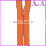 5# Colored Plastic Zipper for Cloth With Orange Teeth and Orange Tape O/E A/L