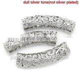 Copper Spacer Beads Curved Tube Silver Tone "Love"& Heart Pattern Hollow 29mmx9mm,Hole:Approx 4.4mm,5PCs,Customize