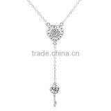 New Fashion Y Shaped Lariat Necklace Silver Plated Heart Message " Love You " Carved Connector Flower Key Pendant 46.0cm Long