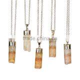 New Fashion Quartz Crystal Druzy /Drusy Necklace Link Cable Chain Gold Plated Cylinder Orange Pendant 62cm - 61cm Long