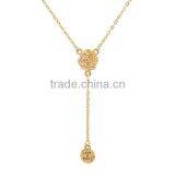 New Fashion Gold Plated Pattern Hollow Carved Connector Flower Pendant With Clear Rhinestone Y Shaped Lariat Necklace