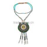 Home > Products > Necklace > New Fashion Layered Necklace Gold Plated With Hamsa Symbol Hand Roun Pendants Green Blue Beads 44.2cm Long