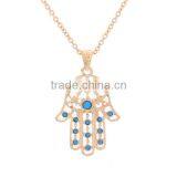 New Fashion Necklace Link Cable Chain Golden Blue Hamsa Symbol Hand Flower Hollow Carved Pendant 45cm Long