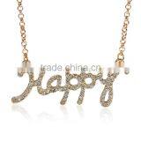 Jewelry Cable Chain Necklace "Happy" Gold Plated Clear Rhinestone Lobster Clasp Extender Chain 46.5cmlong