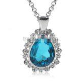 Jewelry Lobster Clasp Cable Chain Necklace Teardrop Silver Tone Blue Clear Rhinestone Faceted 64cm Long