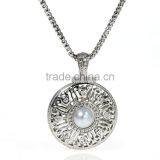 Fashion Jewelry Necklace Round Silver Tone Clear Rhinestone Pearl Imitation Acrylic Findings With Lobster Clasp 65.5cm Long