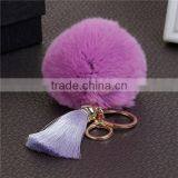 Custom Gold Plated Purple Angora Rayon Tassel Pom Pom Keychain