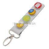 Rectangle Real Leather Glass Snap Button Key Chain W/Lobster Clasp