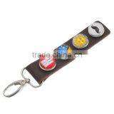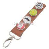 Helm&Loop&Mustache&Castle Pattern Glass Snap Button Real Leather Key Chain W/Lobster Clasp