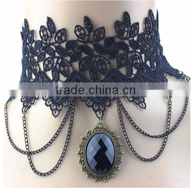 Lace Items Black Stone Pendant Necklace Decorated Collar Chain Retro Fake Collar Lace Bridal Choker
