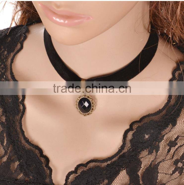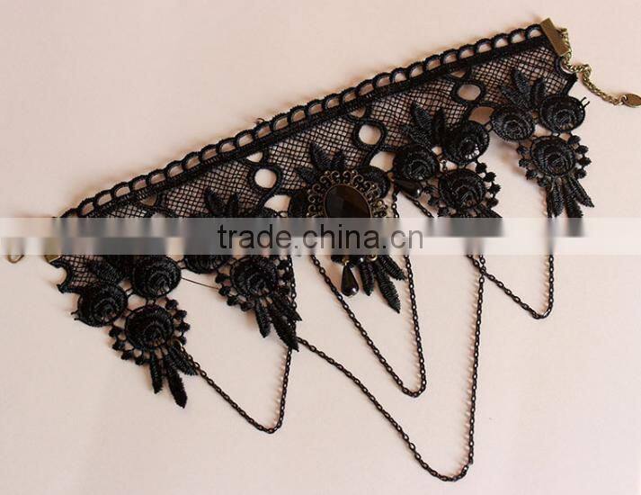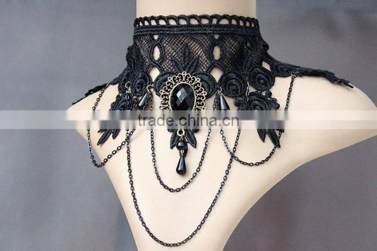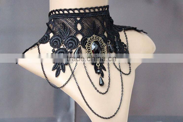 Lace Items Black Stone Pendant Necklace Decorated Collar Chain Retro Fake Collar Lace Bridal Choker