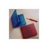 Description:Features: 1) Notebook includes ball pen and 90 sheets of 70gsm paper 2) Big logo imprint area 3) Transparent solid color available 4) Item size: 145 x 155 x 14mm