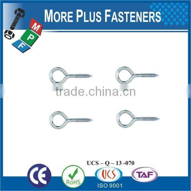 Made in Taiwan High Quality Stainless Steel Hook Eye Screw Eye Wood Screws