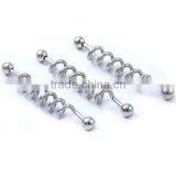 Wholesale New Hot Charm 14G 316L Surgical Stainless Steel Spiral Industrial Barbell Tongue Ring
