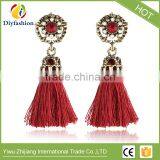 Fashion Retro Cotton Tassel Crystal 3 Colors Long Earring