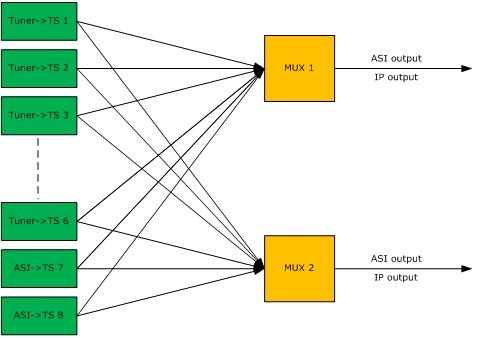 DVB TS Tuner Multiplexer ( 2 ASI and 6 Tuner In)