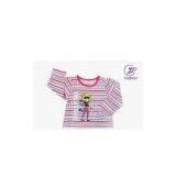 Custom Organic Cotton Girl Pink Stripe Round Collar Toddler Graphic Tee Shirts