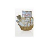 Natural Customized Spa Bubble Bath Gift Set in Basket With Wooden Brush OEM / ODM