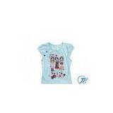 All Cotton Girl Light Blue Toddler Graphic Simple Tees With Mini Sleeves
