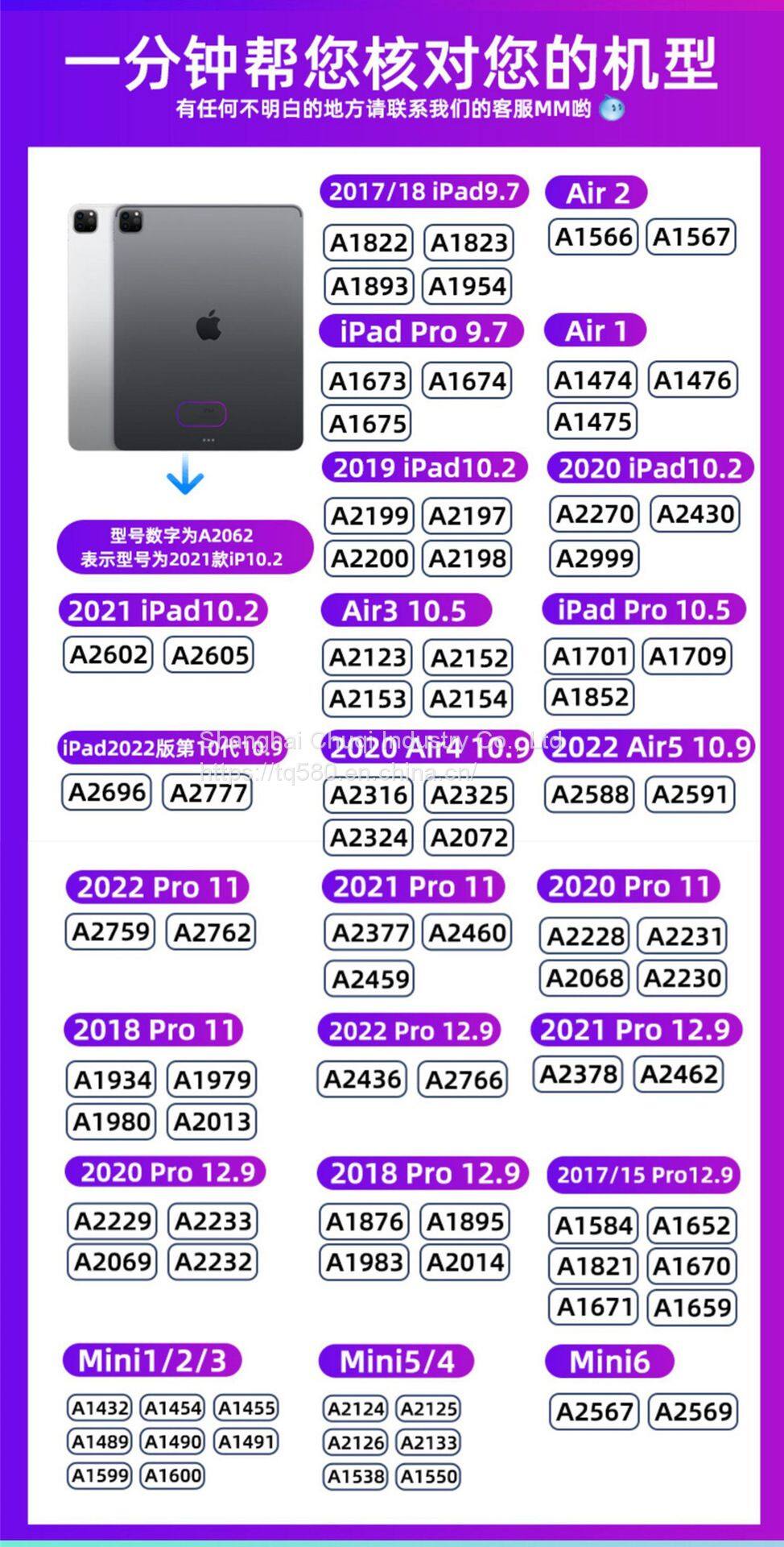 Spot model: 12.9 "(2015/2017)12.9" new model (2022/21/20/18 GM) 9.7 ",10.2", 10.5 ",10.9", iPad mini 12345 generation; (Other sizes can also be customized in quantity)