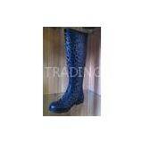 Size 38 Fashion Brown Knee Women Rubber Rain Boots With Lace Up