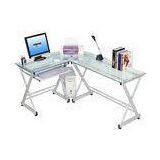 Simple Modern Glass Tablet PC Desk Hardware Office Table , 0.7mm Steel Tube DX-8877
