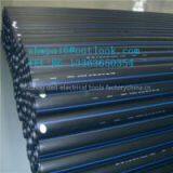 Polyethylene water pipes are produced in black, black with blue stripes and blue etc.