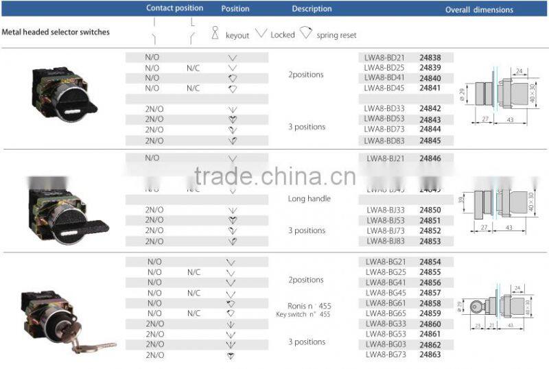 Home > Products > Power distribution cabinet accessories > flush projecting double push buttons switch LWA8-BW8345 2 position