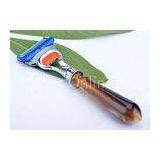 Handcrafted Mach 3 Razor Faux Horn Safety Razor Long Handle for Men