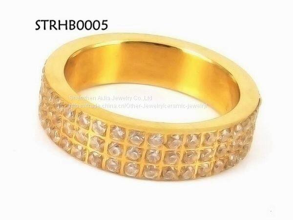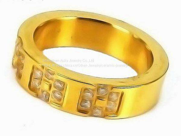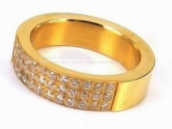 IP Gold Plated Stainless Steel Wedding Ring With Crystals