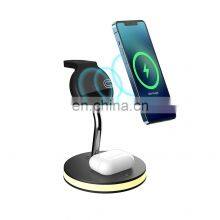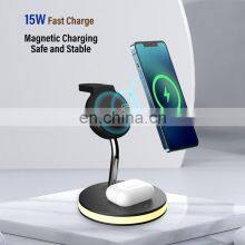 Portable 15w qi fast wireless charger stand 4 in 1 wireless charging station