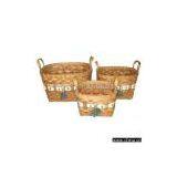 Description:Features: 1) Material: banana leaf 2) Elegant design, high quality, competitive price 3) Customers' designs acceptable 4) Size: a) L: 14 x 14 x 11.25" b) S: 12 x 12 x 10" Packing: 4 sets/carton Carton dimensions: 96 x 37 x 37cm