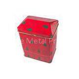 Red Printed Empty Gift Tins With Cover , House-Shaped Tin Jar