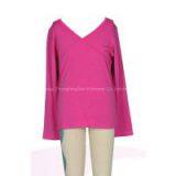 Girl\\\'s V-neck Lovely Pink Merino Wool Top Tee