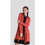 Women/lady\\\'s Elegant Red Merino Wool Long Cardigan/wtih Lght Yellow Stripes