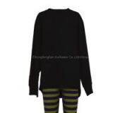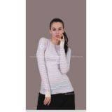 Lady\\\'s Pink and White Stripe Merino Wool Underwear/sportswear//round-neck//with Badge