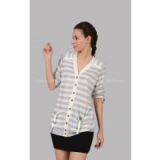 Women\\\'s Elegant V-neck Front Button Merino Wool Grey and Whtie Stripe Cardigan
