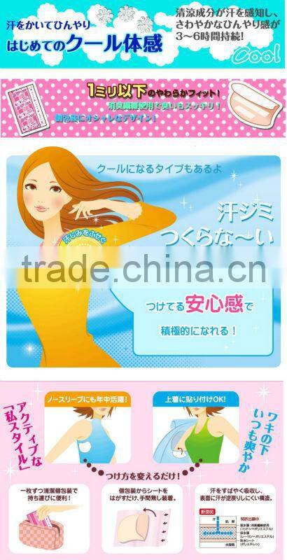Japan underarm pads Ultra Thin, Strong Absorvency, Deodorant Effect, Cooling Effect, attractive package design wholesale