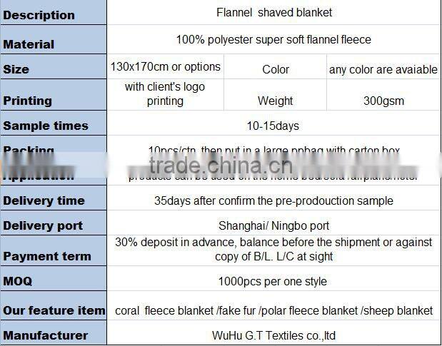 Wholesale Super Soft Blanket& 100% Polyester Flannel Shaved Blanket