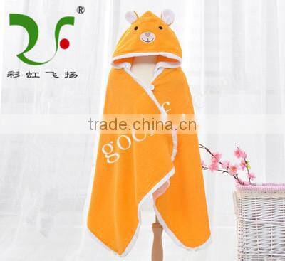 Towel factory wholesale 100% cotton Animal kids hooded bath towels, ultra soft and thermal, trimmed with applique and embroidery.