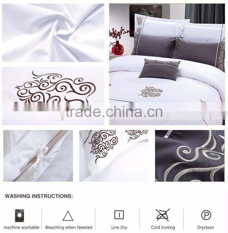 China Supplier Dubai 4 Stars Hotel Egyptian Cotton Bed Linen Embroidering Duvet Cover Set