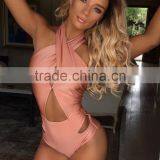 B40263A Women Sexy Swimwears Hollowed Halter Jumpsuits