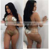 B40285A Sexy Two Pieces Bikini Sets Gold Bandage Swimwear