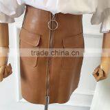 B22674A Women Fashion PU Leather Skirt High Waisted Skirt Zipper Skirt