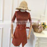 B22670A Autumn Korea Women 2 Piece Knitted Shirt and Belt Waist Suspender Skirt Sets
