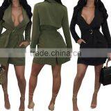 B33788A Autumn Fashion Deep V Lace Sleeve Cheap Sexy Bodysuit