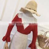 B22667A Korea Women Loose Stitching Slim Horn Sleeve Knit Shirt