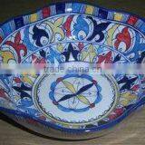 Unique Handmade DINNERWARE BOWL made up of Blue Pottery . This is Beautiful blue pottery article with lot of designs .Blue pottery is an art of adorning clay pottery items. And the name comes from Persian blue dye, which is used to color the clay. The pottery is made using various varieties of clay, and other materials.