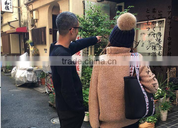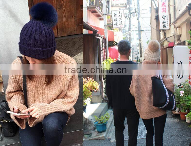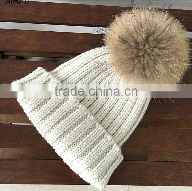 High Quality Custom Women Fashion Real Raccoon Fur Pom Pom Hat Winter Knitted Hat Beanie Cap