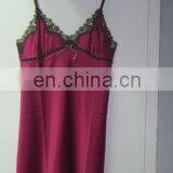 Lady's 100%polyester Satin Chemise With Emb.lace Underwear Lingerie